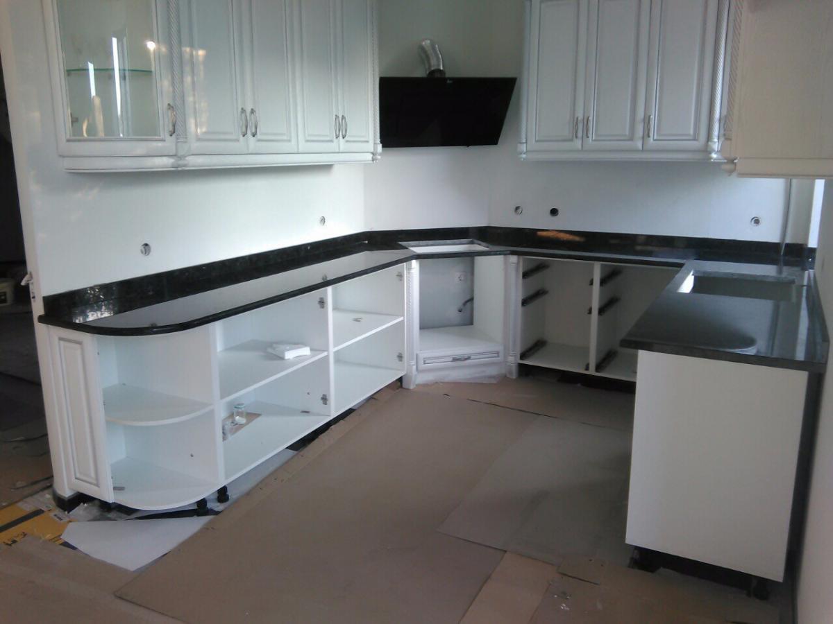 Стільниця з чорного лабрадориту своїм глибоким відтінком в поєднанні з білим фасадам кухні, додасть вашій оселі витонченості та інндевідуальності
